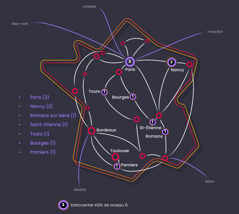 – 9 datacenters déjà certifiés HDS (Hébergeur de Données de Santé nouvelle version), un 10ème en cours, pour répondre aux exigences strictes du secteur santé.