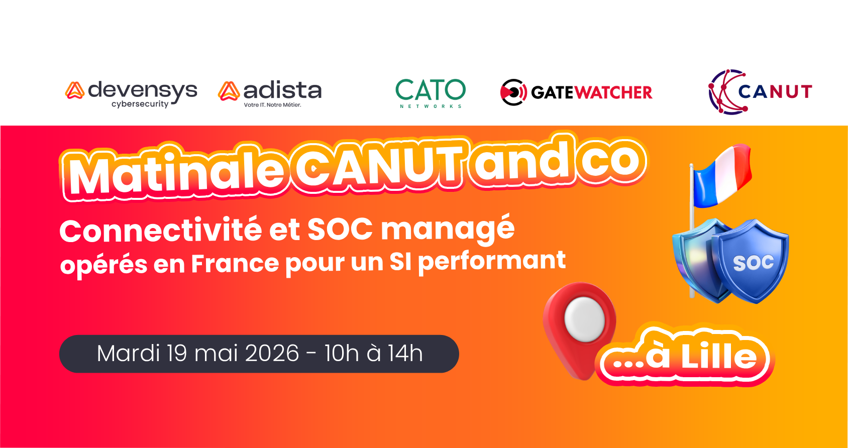 - 10h30 : Les enjeux numériques pour les structures publiques, les 2 lots titulaires de la CANUT Télécoms et SOC managé opéré en France) , Cas d’usage et paroles d’experts partenaires, GateWatcher et CATO Networks.